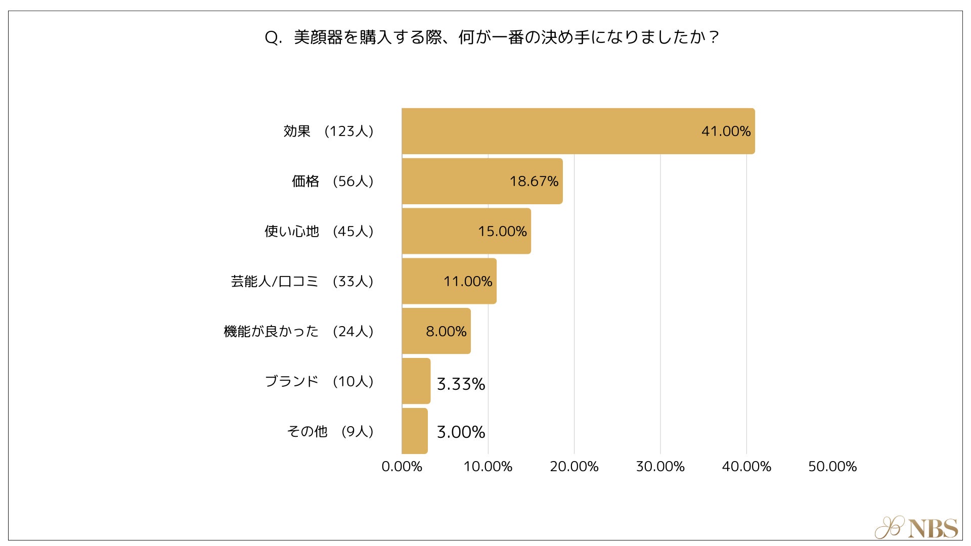株式会社NBSは2024年10月31日に、20~60代の美顔器(フェイスローラーを除く)を自分のために購入した経験のある女性、計300名を対象に、美顔器に関する意識調査を実施しました。